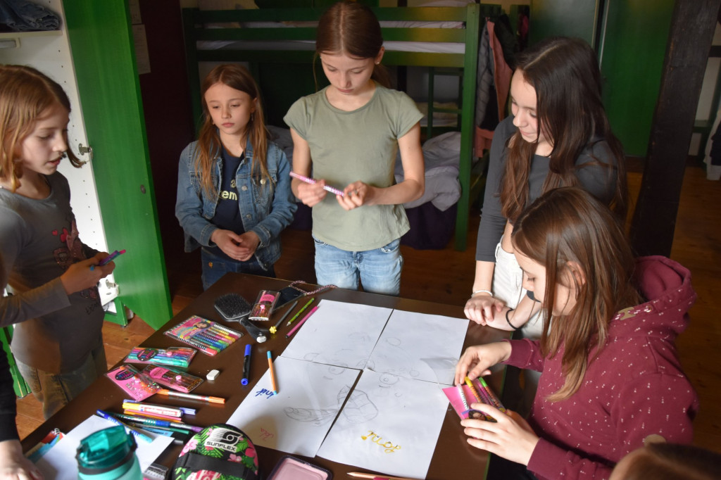 Und so ging es auch gleich mit einem kleinen Astronautentraining los, bei dem die Kinder verschiedene Bewegungen mitmachen mussten. Als es dann auf die Zimmer ging, durfte jedes Zimmer sich einen Planeten ausdenken. So würde das Zimmer die nächsten Tage heißen.