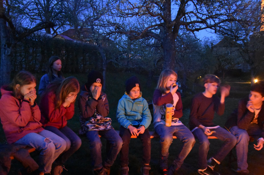 Auch an Aktionen kam die Freizeit nicht zu kurz. Am ersten Tag machten wir abends eine Nachtwanderung, bei der die Kinder leuchtende Gegenstände suchen konnten, die wir zuvor im Wald versteckten. Anschließend gab es noch ein Lagerfeuer, bei dem es noch Stockbrot gab.